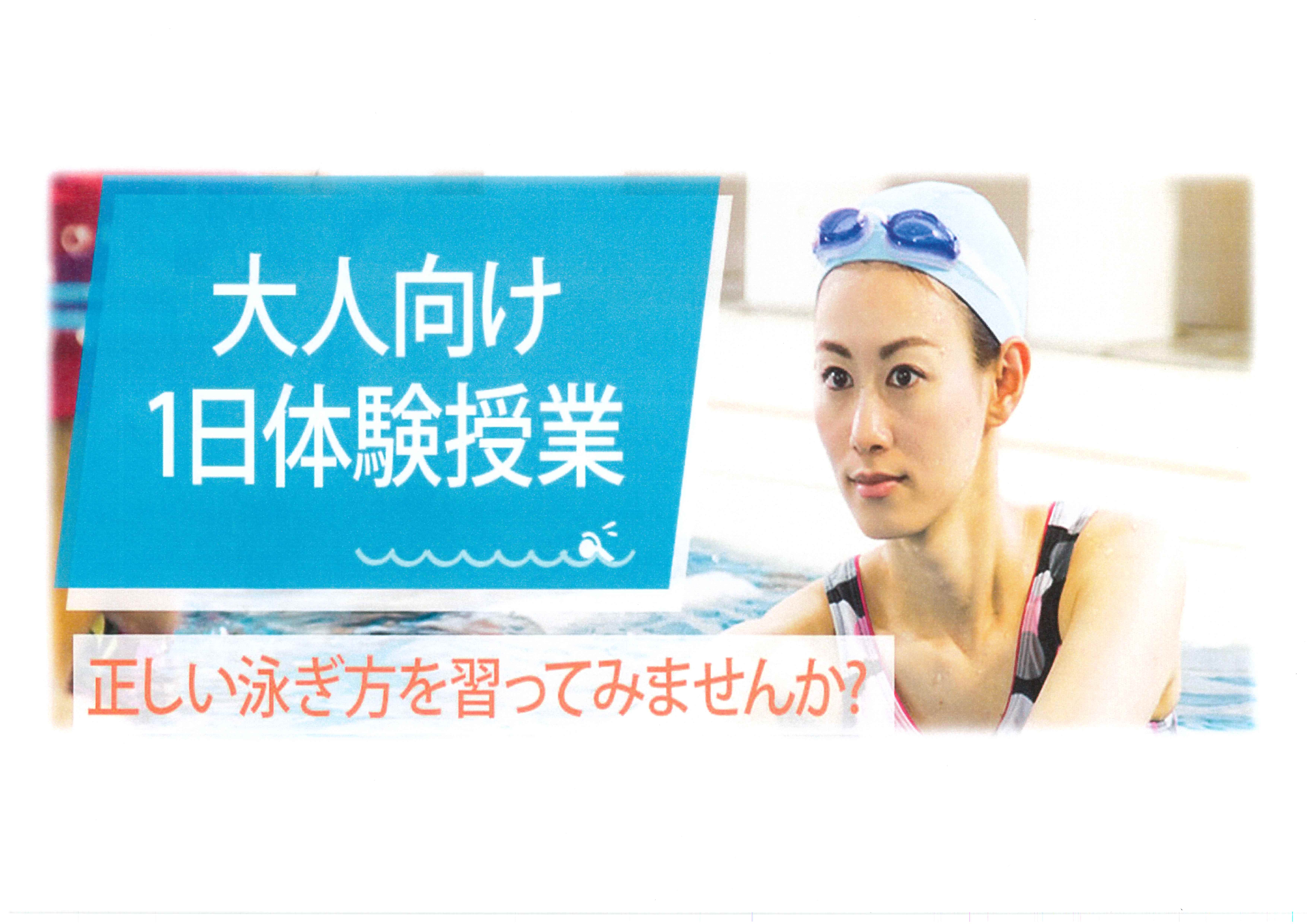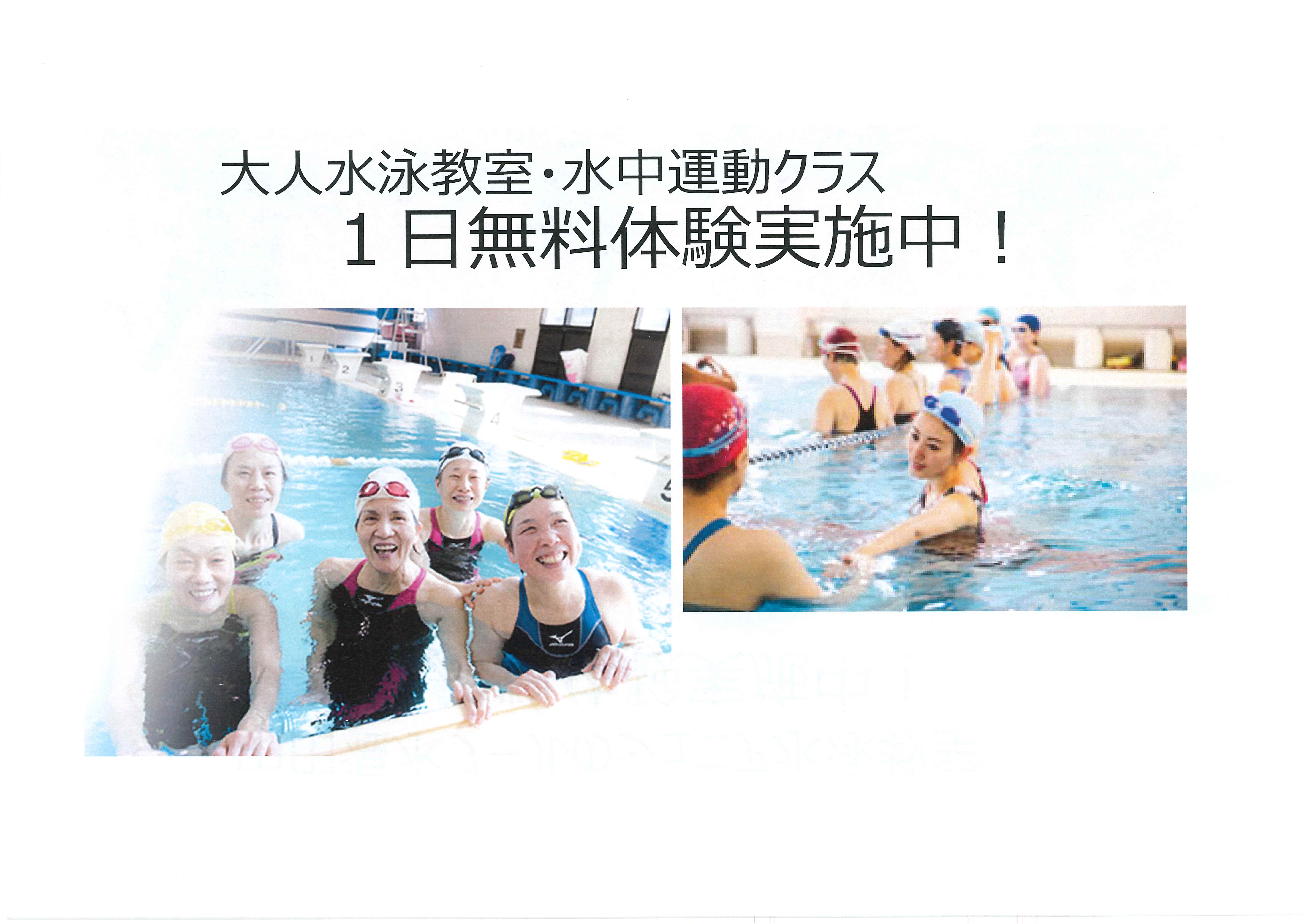大人水泳教室及び水中運動クラス無料体験のご案内