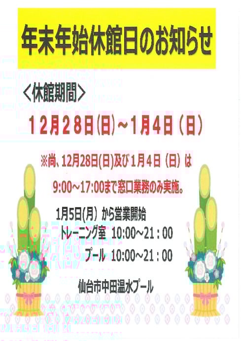 年末年始休館日のお知らせ
