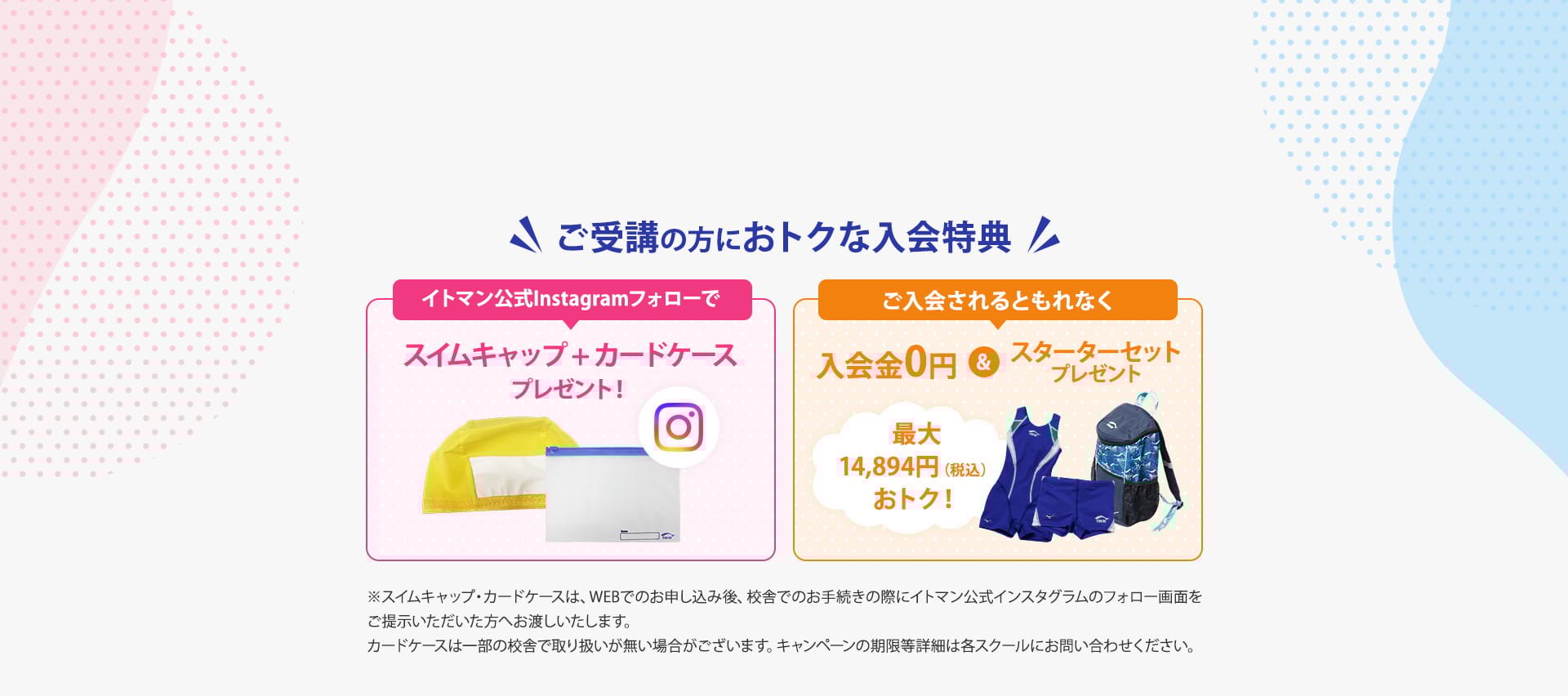 泳ぐ楽しさ、プールの環境をじっくり体験してほしいから、2日間開催しています。