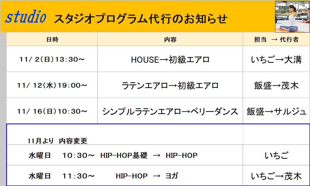 営業時間・プログラム改訂のお知らせ