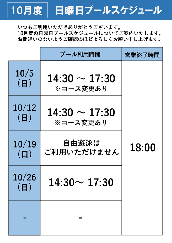 【10月度】プールスケジュールについて