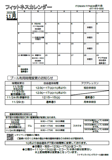 フィットネス11月カレンダー