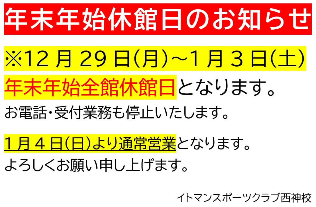 年末年始営業日のお知らせ