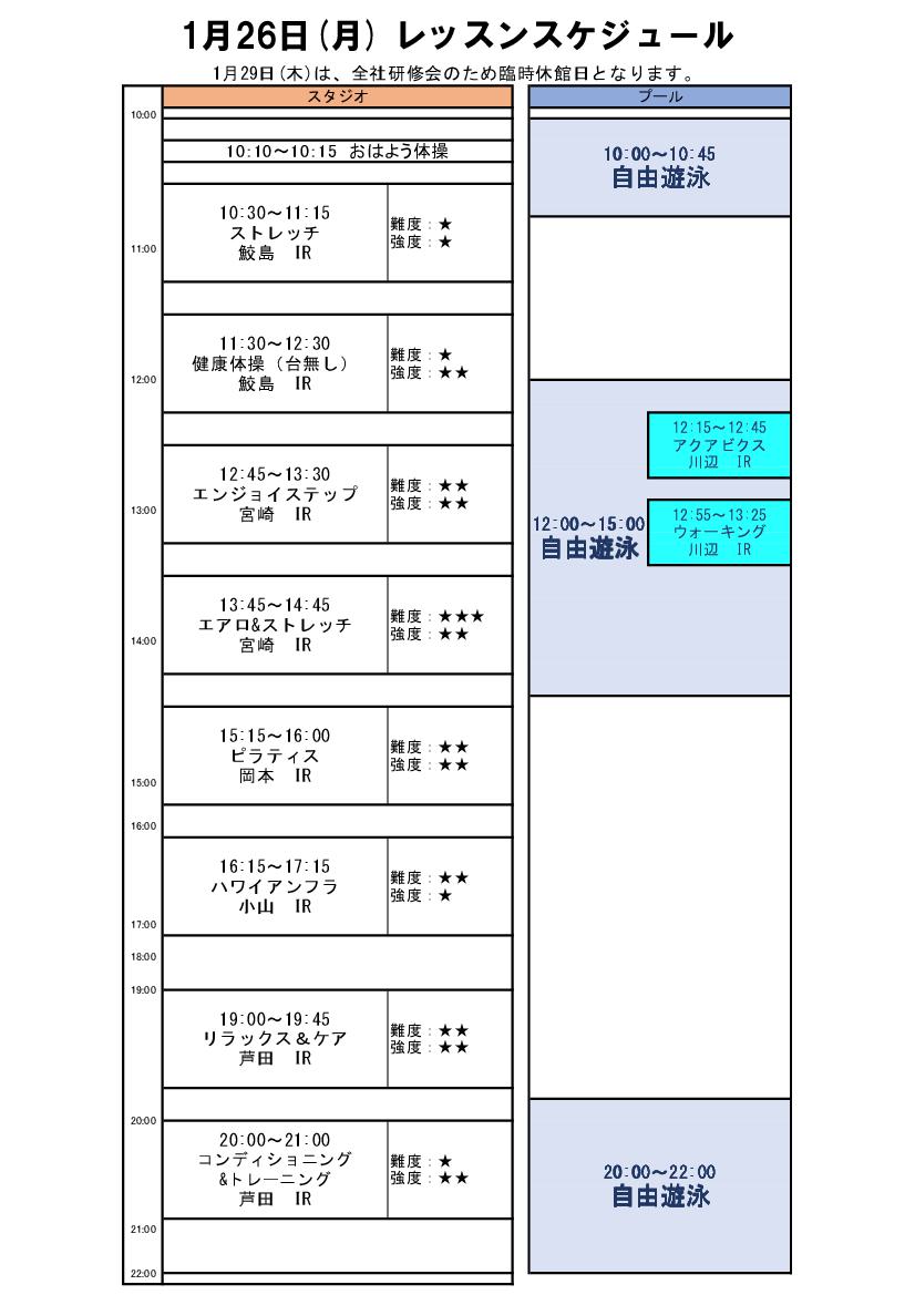 1月26日(月)振替営業レッスンスケジュール