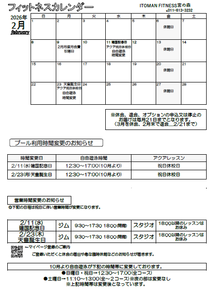 フィットネス2月カレンダー