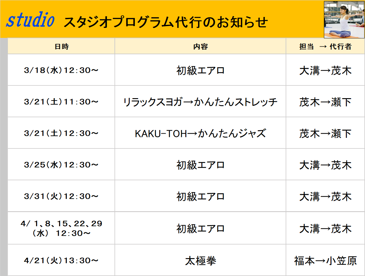 3月遊泳時間変更(2/27更新)