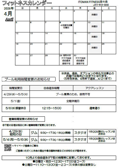 フィットネス4月カレンダー