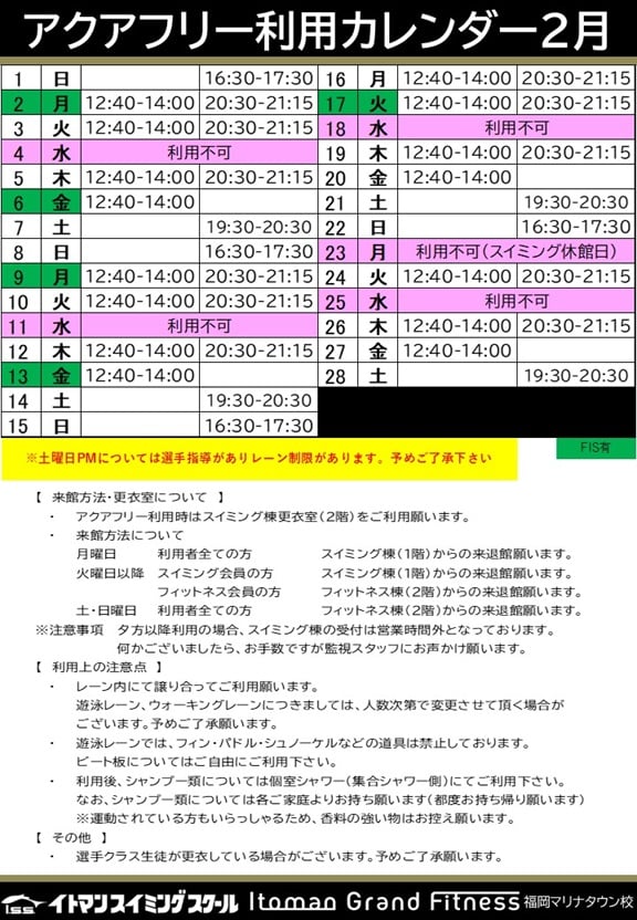 | 2026/1/17 | 2月アクアフリーカレンダー |
