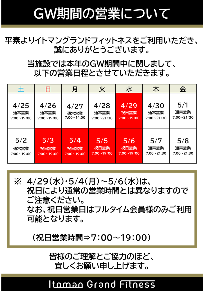 本日は、ゴールデンウイーク期間の営業についてお知らせいたします。