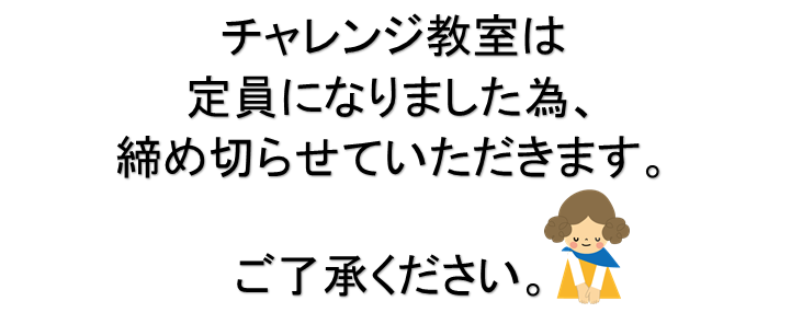 チャレンジ教室 申込み終了となりました
