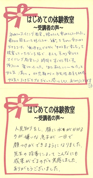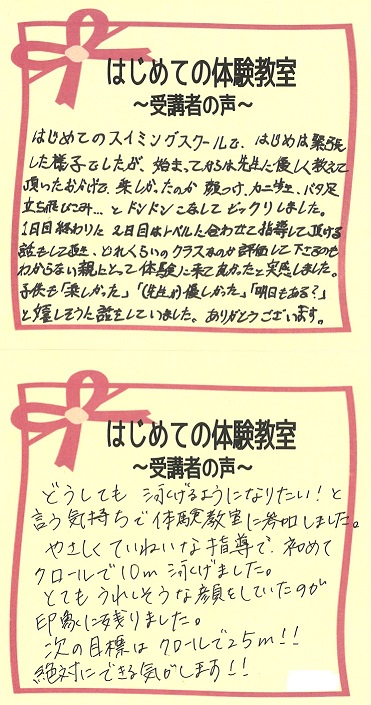 受講者の皆様からいただいた体験教室の感想を