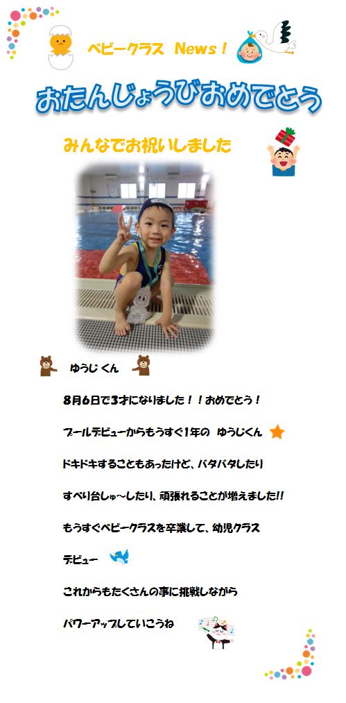 ♪ベビークラス News♪ お誕生日お祝いしました!‘ゆうじくん’