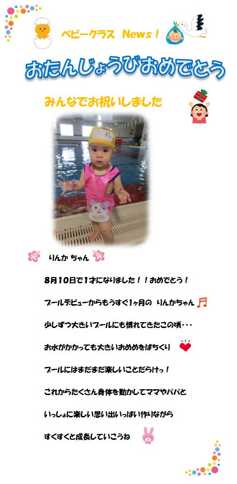 ♪ベビークラス News♪ お誕生日お祝いしました!‘りんかちゃん’