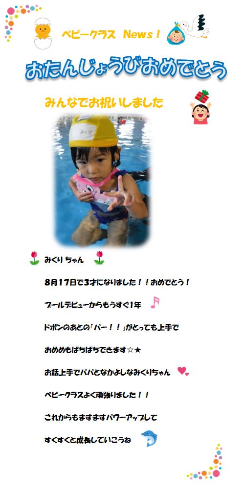 ♪ベビークラス News♪ お誕生日お祝いしました!‘みくりちゃん’