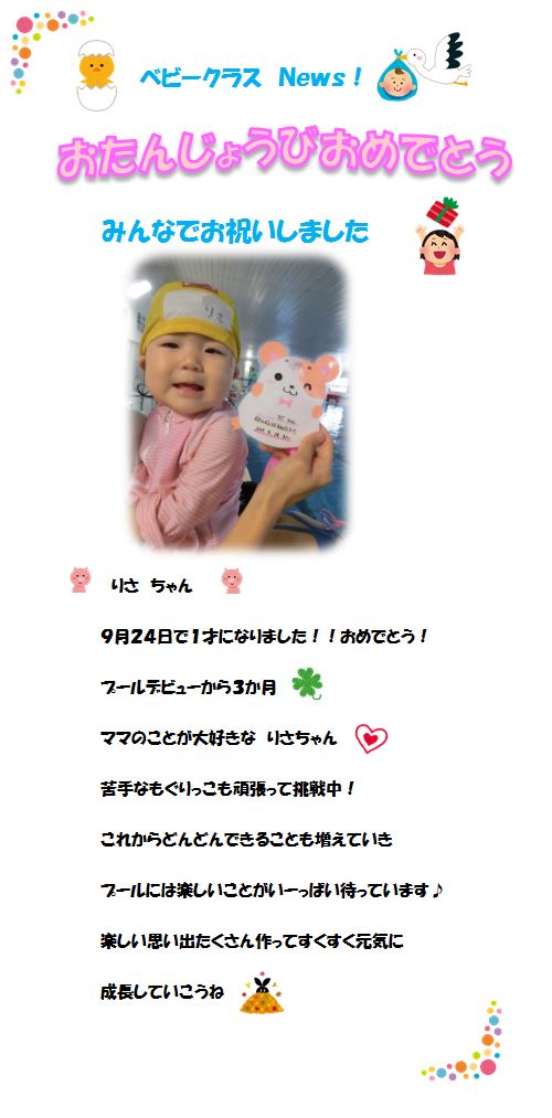 ♪ベビークラス News♪ お誕生日お祝いしました!‘りさちゃん’
