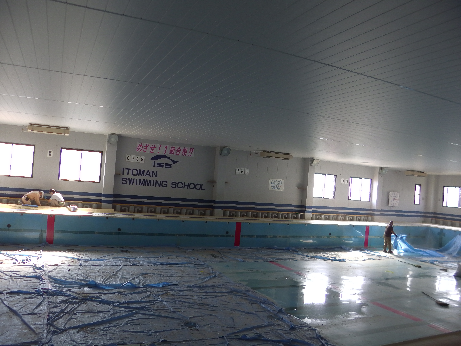 プールの中をきれいに磨きます!