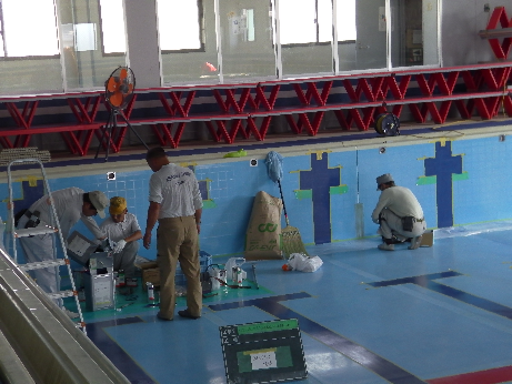 プール内の塗装が始まりました!