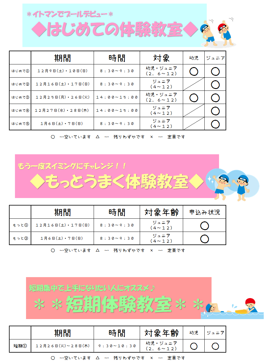 11月1日(水)申し込みスタート!!冬の特別教室日程のお知らせ♪