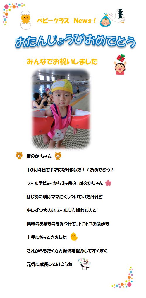 ♪ベビークラス News♪ お誕生日お祝いしました!‘ほのかちゃん’