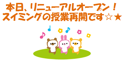 スイミングの授業も1ヶ月半ぶりに再開致します・・・!