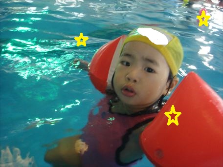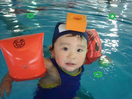 ブロックを頭に!!!とっても上手にぷかぷかしていますね!