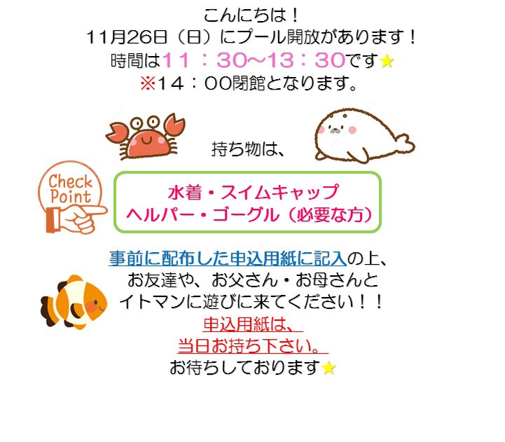 プール開放★今週の日曜日です!!