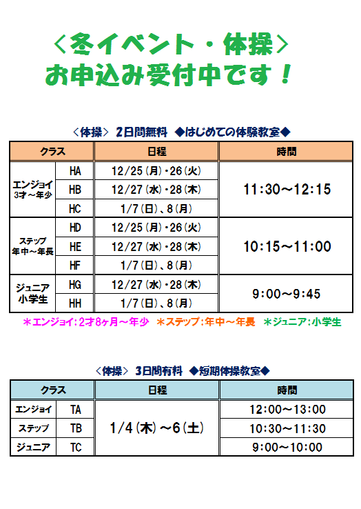 さて、現在冬イベントのお申し込み受付中ですが、
