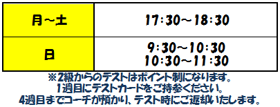 2級以上の方は授業の開講時間が以下のお時間帯に限られます。