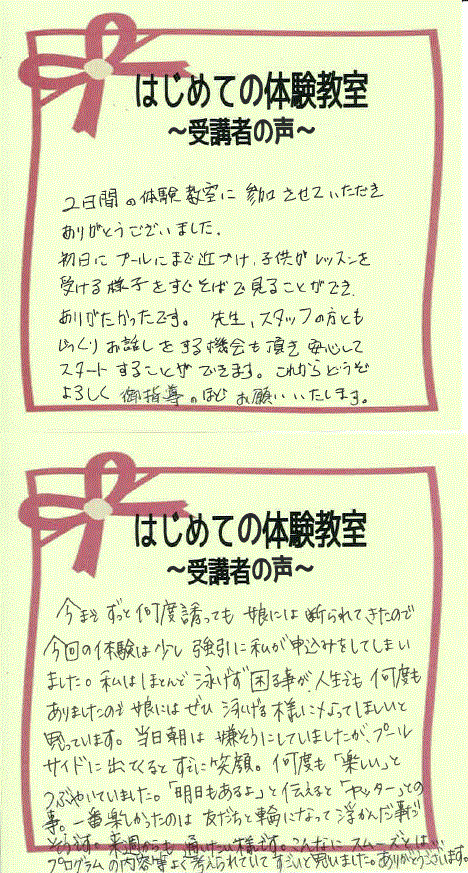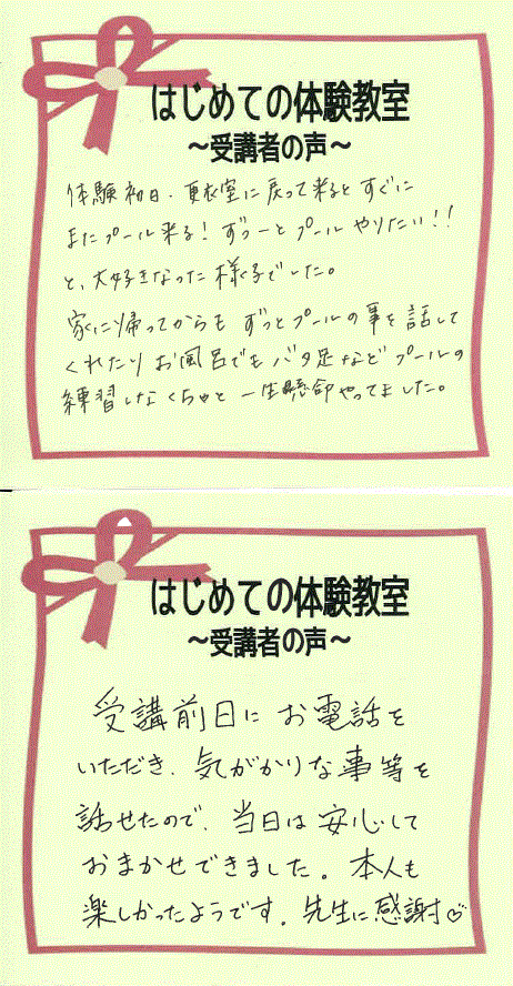 受講者の皆様からいただいた体験教室の感想をご紹介いたします