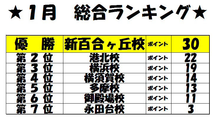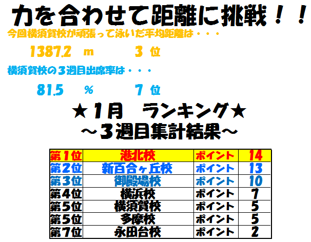 今月の出席率は結果こそ最下位だったもののインフルエンザなどの休みが多かった中で
