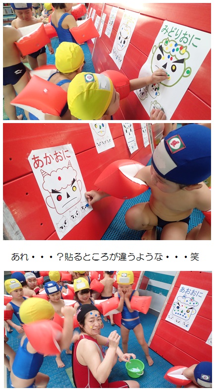 鬼さんの顔にシール貼り!!