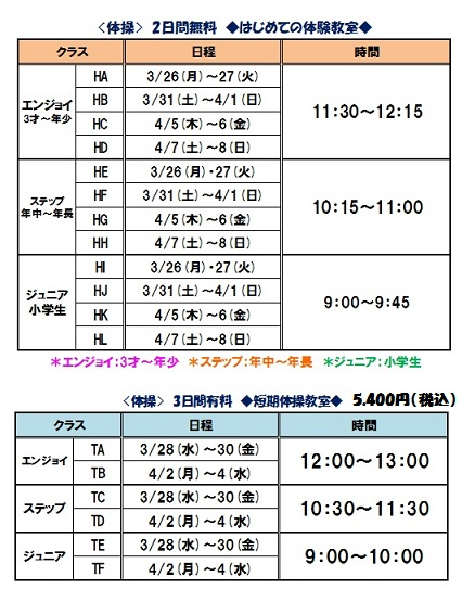 体操教室の春イベントのお申込も、15日(木)よりスタートしました!!
