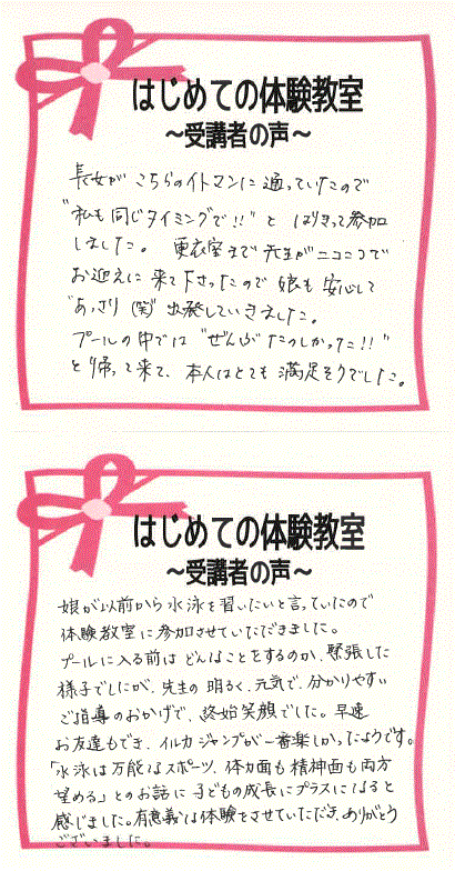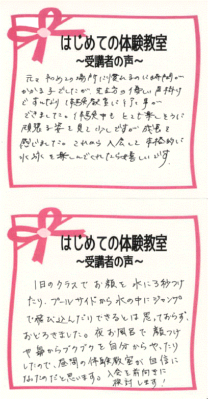 受講者の皆様からいただいた体験教室の感想をご紹介いたします