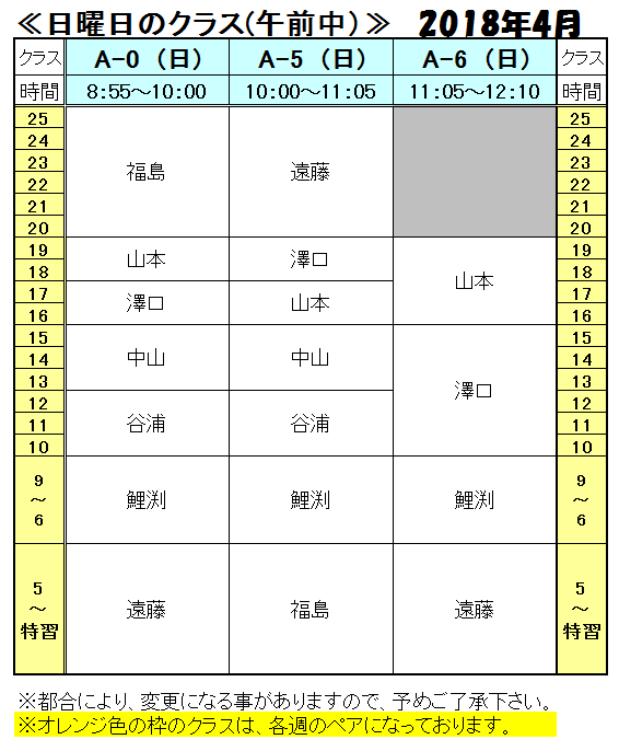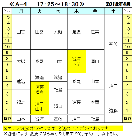 <2018年 4月の担当表>