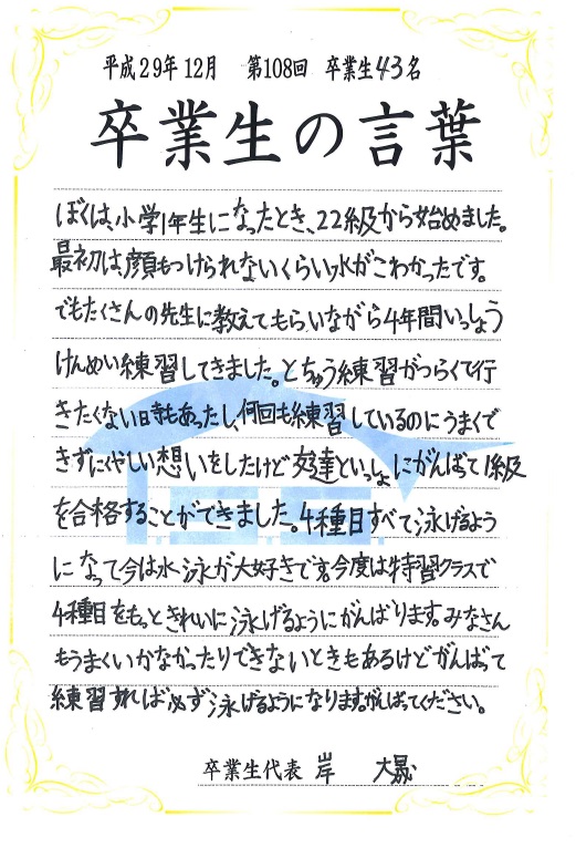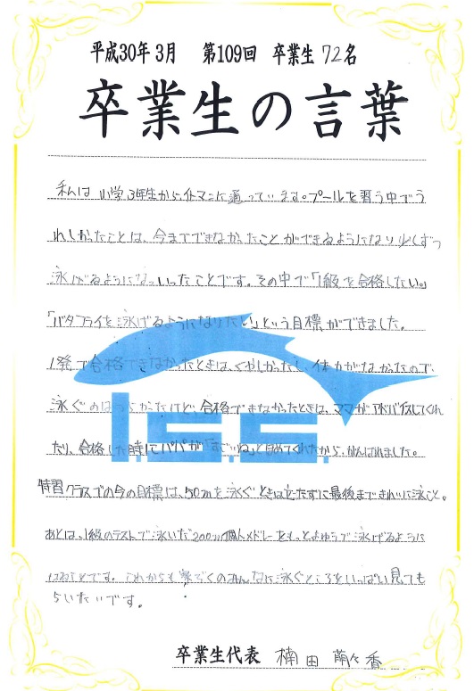 次回の「卒業の言葉」もお楽しみに!!