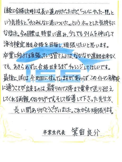 思います。「1級合格・卒業」という輝かしい