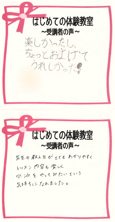受講者の皆様からいただいた体験教室の感想をご紹介いたします