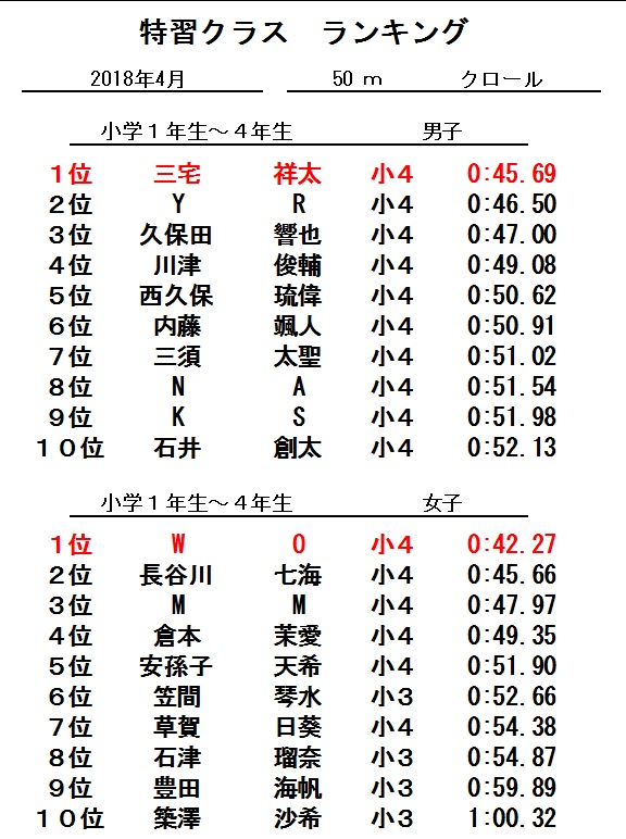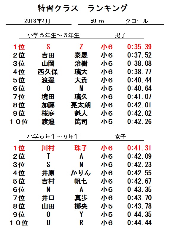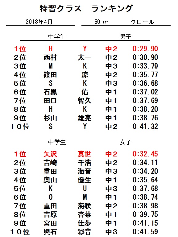 特習クラス 4月度ランキング!!