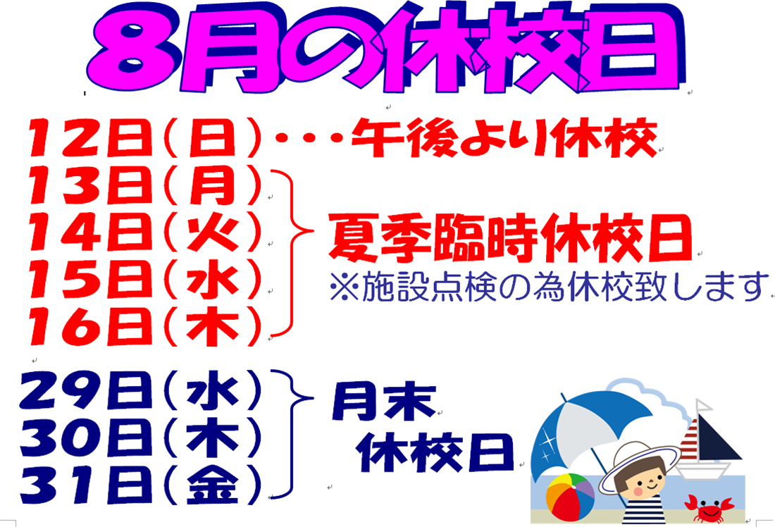 ※休校日中は受付が出来ませんのでご了承下さい。