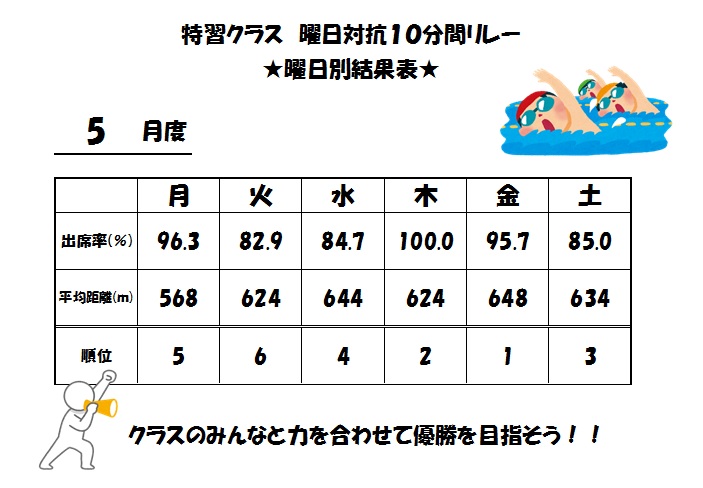 ★特習クラス 曜日対抗リレー結果★