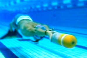 普通の水泳競技とは違って水面から顔を出してはいけないのでシュノーケルを使って泳ぎます。