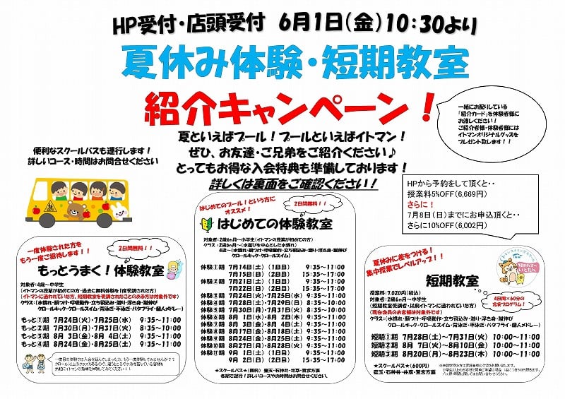 夏休みチャレンジ教室・泳力判定のご案内(特習)