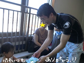 最後にママにこっそりプレゼントを用意してもらって、パパにサプライズプレゼント(●^O^●)