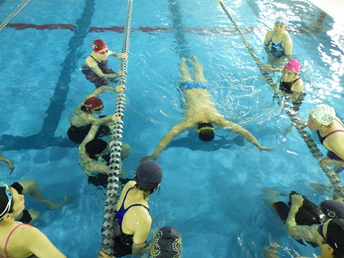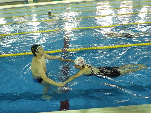 内容は陸上でのストレッチ練習・水中でのドリル練習の2本立てとなります。