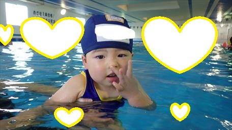 お父さんのもとへ、とっても上手に泳げましたね!