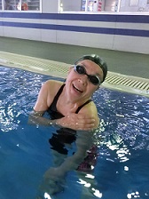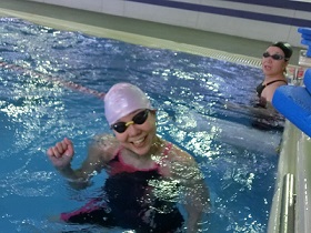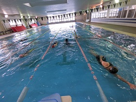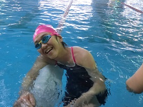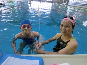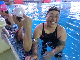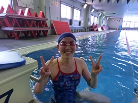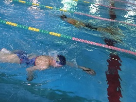 泳いで