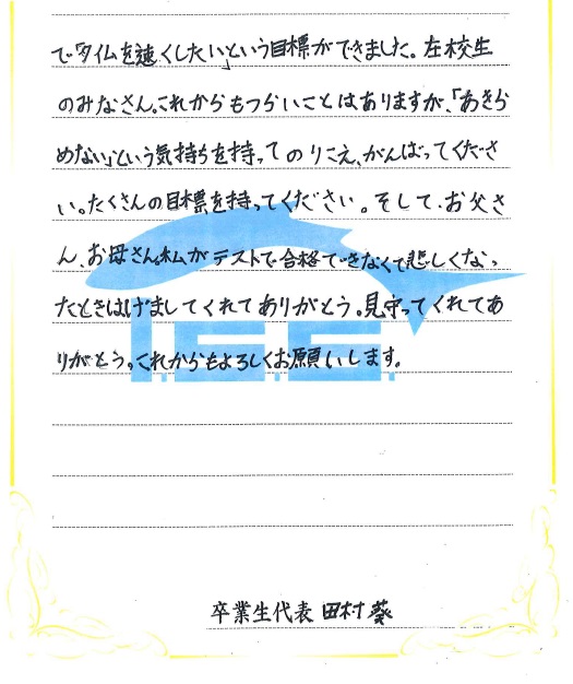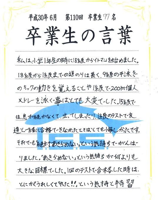 次回の「卒業の言葉」もお楽しみに!!