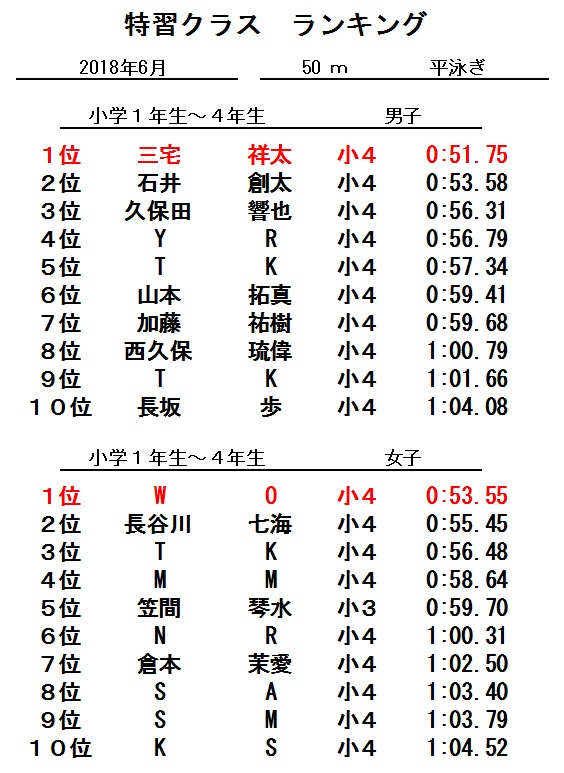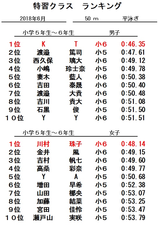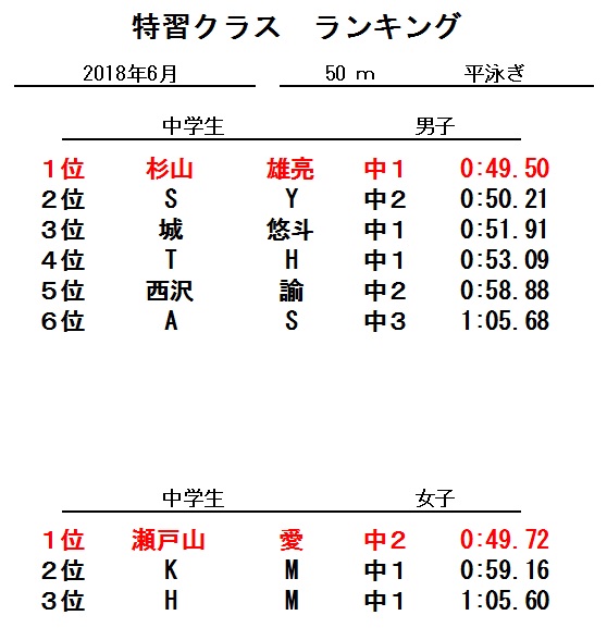 特習クラス6月度ランキング発表!!