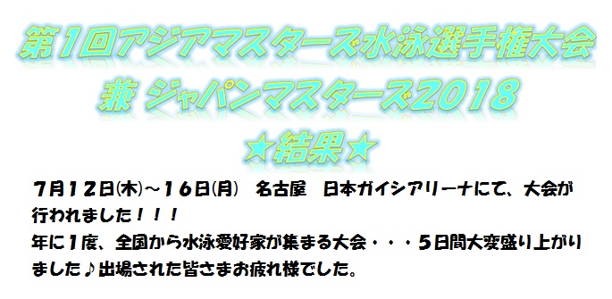 ☆アジアマスターズ 兼 ジャパンマスターズ結果☆