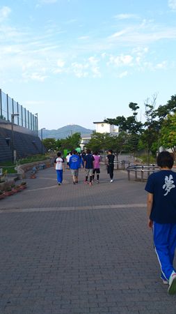市民プールのある公園をぐるっと1週してから、体操をしました。